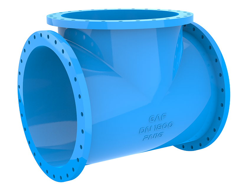 Our Ductile Iron all flanged tee is available with body bores ranging from DN80 to DN2600 and branch bores from DN80 to DN2600.